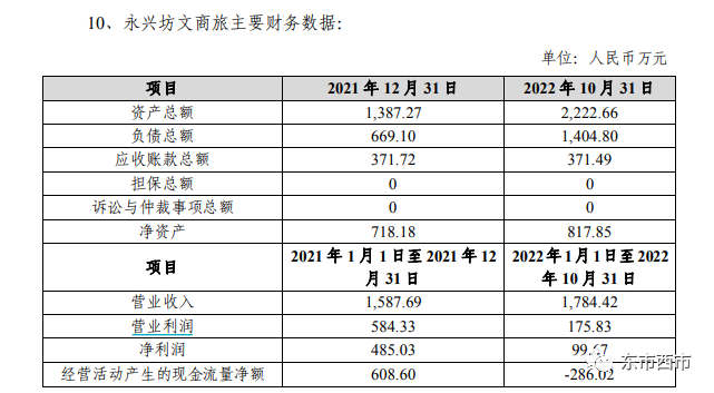 此次收购牵扯永兴坊文商旅原股东间股权转让。永兴坊文商旅原有沈建鹏、沈强两位股东,分别持股69%、31%。按计划,本次收购前沈强应当把持有的注册资本310万元转让给沈建鹏,从而退出永兴坊文旅,永兴坊文商旅将由沈建鹏100%持股。