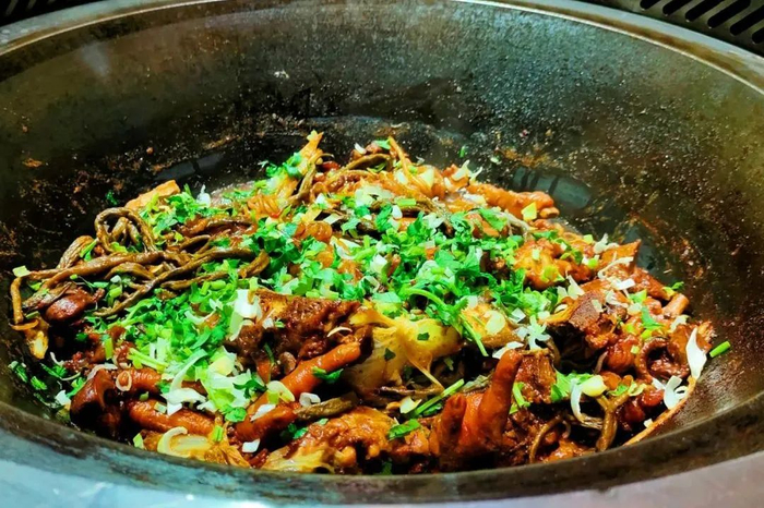 到了东北,不吃一顿铁锅炖实在说不过去。传统大铁锅炖出来的菜,香味扑鼻,拿起筷子尝一口,味道简直太美味了。