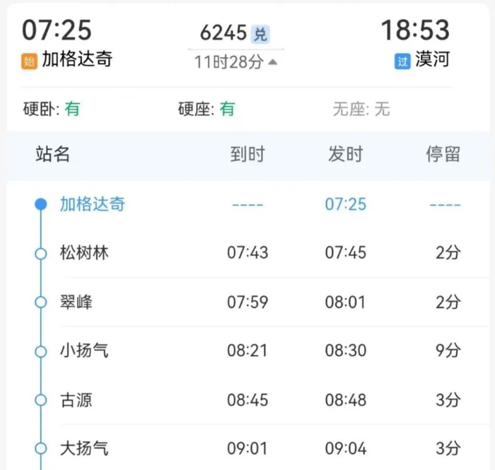 大扬气站和小扬气站都在嫩林铁路线上。这里开行着6245/6246次公益性“慢火车”,是当地百姓出行的重要交通工具。
