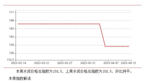 各型号水泥价格指数环比持平,截止至2023年4月13日,淄博P.C42.5水泥价格指数185.8,环比持平;淄博P.O42.5水泥价格指数153.92,环比持平;淄博P.052.5水泥价格指数141.43,环比持平;中国·淄博水泥价格指数158.5,环比持平。(淄博能源事业发展中心)