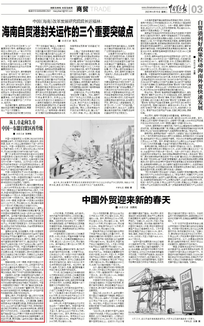 厦门大学南洋研究院教授王勤近日在接受《中国贸易报》记者采访时表示,中国—东盟自贸区是中国对外的第一个自贸区,也是东盟作为整体对外的第一个自贸区。此次升级3.0版本,既有助于在现有领域进一步促进贸易投资自由化、便利化,也有利于拓展数字经济、绿色经济等新兴领域合作,打造地区经济增长的新引擎。