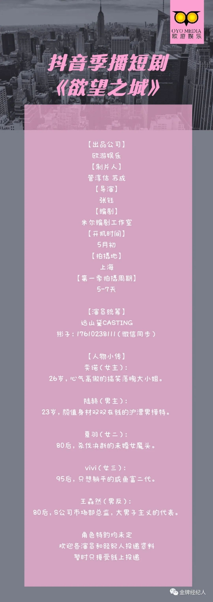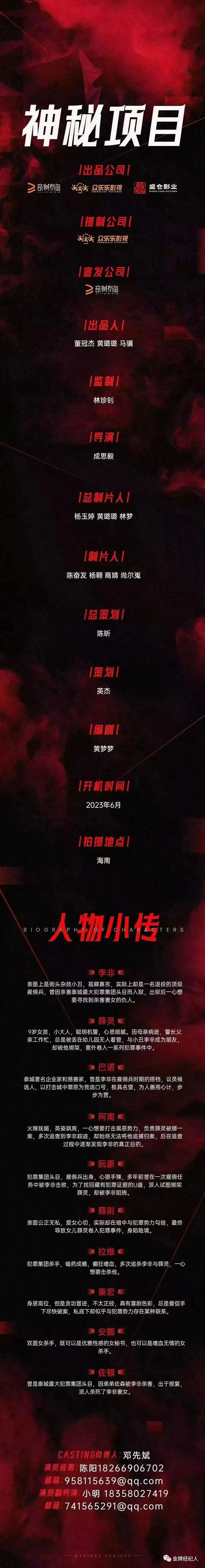 本栏目组讯由小编采集并供业内参考交流使用,信息内容如有变化请根据实际情况核实。各大剧组如有组讯发布,可以联系金牌经纪人,协助扩散!