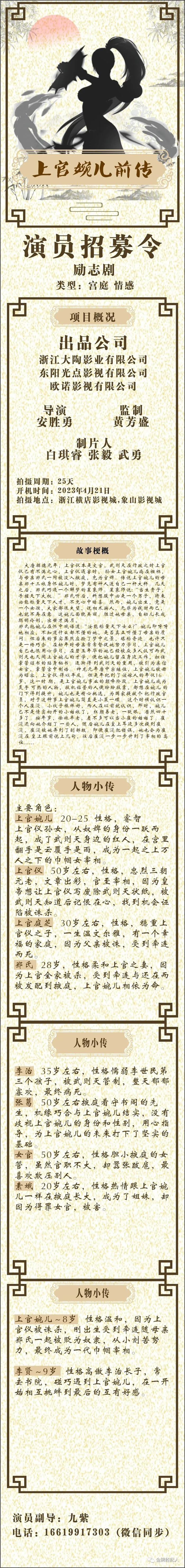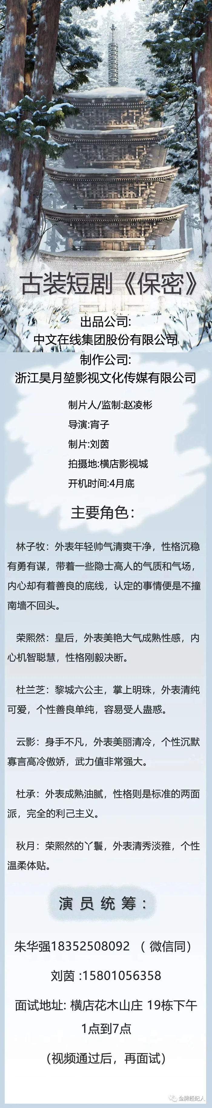 选角导演:李佳腾15369659301