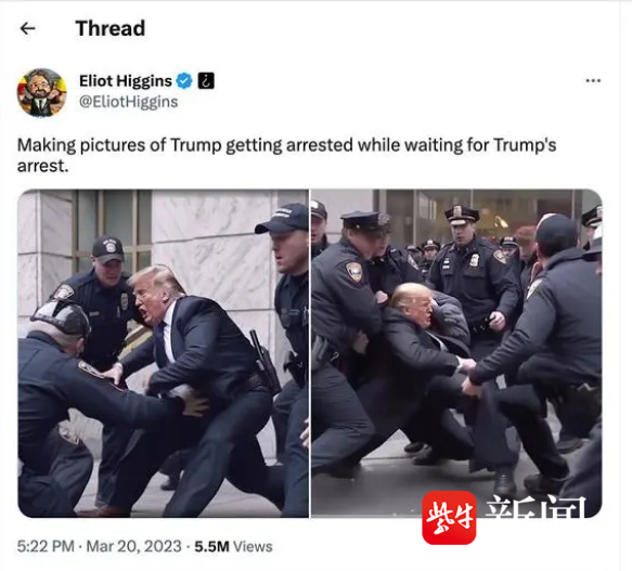 仅就《#电工》这张图来说,如果不看手只看人物面部的话任谁看都足以以假乱真,事实上,过于逼真的AI生成图已经在国际上引发了舆论的强烈反响,就在不久前,有网友用AI恶搞生成了一系列“特朗普被捕”的假新闻照片引发了社会各界对AI生成技术可能造成的虚假信息传播、挑动公众情绪方面的担忧,“需要监管”成为大众普遍的呼声。