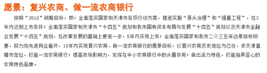 2021年天津农商行变动颇多,除行长、董事长“大换血”外,天津农商行还提出了上市愿景。在2021年7月召开的2021年年中工作会上,天津农商行提出上市构想,计划三年内达到上市条件、五年内实现上市、十年内实现复兴。《农金研究》发现,天津农商行的官网亦提出“3510”的上市战略目标。