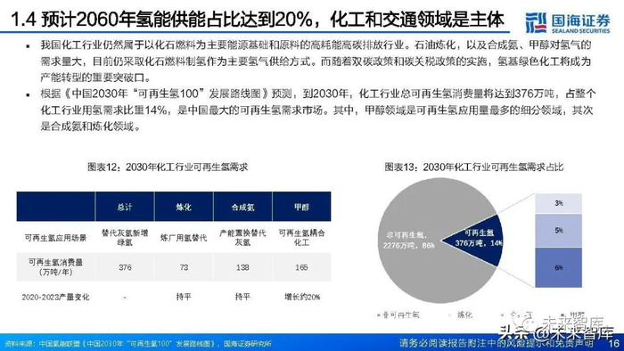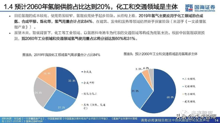 预计2060年氢能供能占比达到20%,化工和交通领域是主体