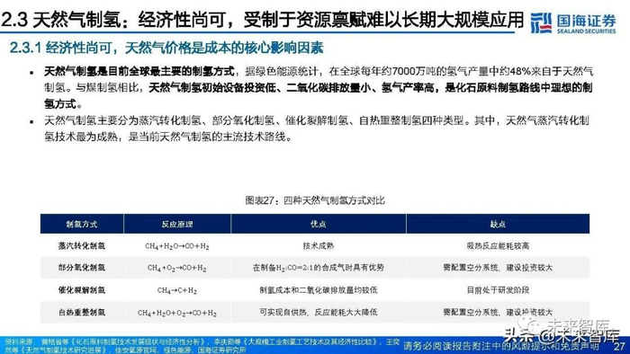 天然气制氢:经济性尚可,受制于资源禀赋难以长期大规模应用