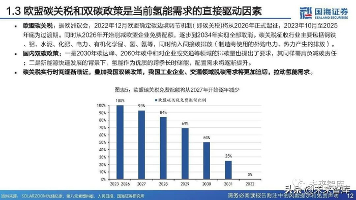 欧盟碳关税和双碳政策是当前氢能需求的直接驱动因素