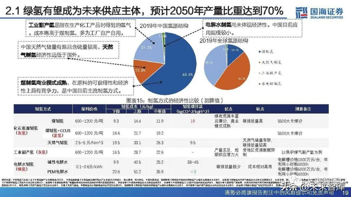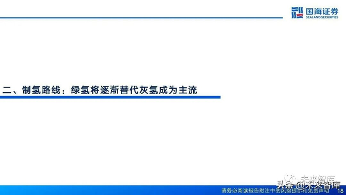 二、制氢路线:绿氢将逐渐替代灰氢成为主流