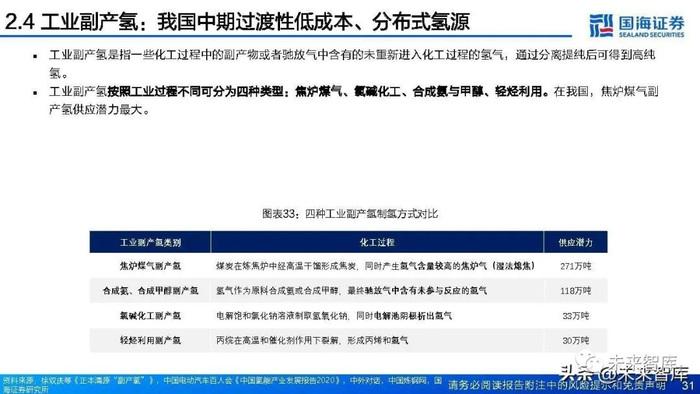 工业副产氢:我国中期过渡性低成本、分布式氢源