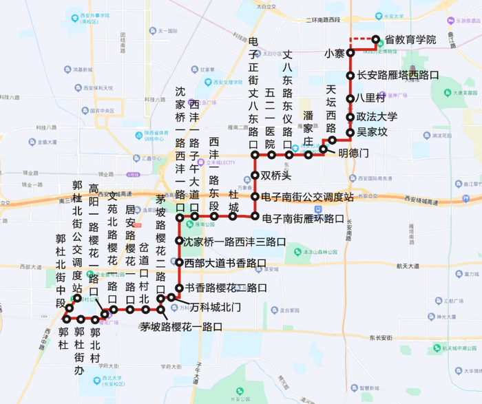 首末站: 郭杜北街公交调度站——省教育学院