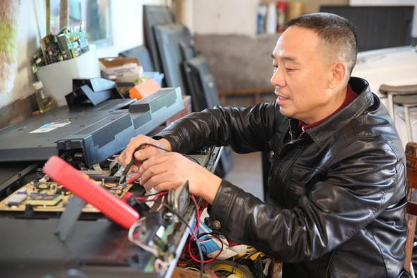 彭凯云正在修理电器。