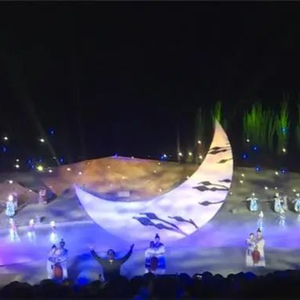 大型沙漠实景演出《敦煌盛典》以敦煌市鸣沙山月牙泉为背景,将沙漠景观与现代舞相结合,讲述了发生在古丝绸之路重镇敦煌的一段传奇爱情故事。剧目将裸眼3D墙体投影、互动包裹式剧场、多介质水面造影、综合机械演出、震撼墙体灯光秀、激光秀等表演元素融入实景演出中,独创360度旋转并前后移动观众席,让游客边旋转边体验,身未动而景已变,彻底颠覆了传统剧场舞台表演模式和观看形式,给观众带来不同以往的观感体验。