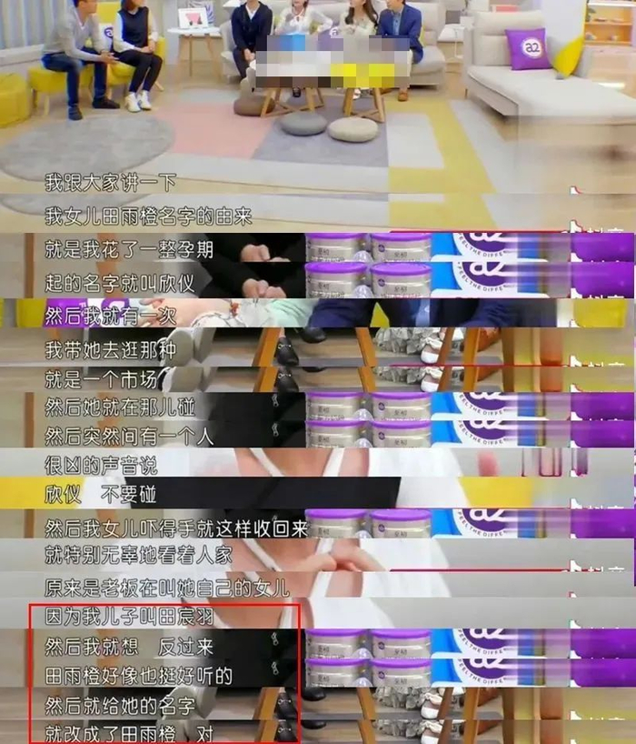 叶一茜直接把儿子的名字“田宸羽”倒过来,给森碟改成“田雨橙”。