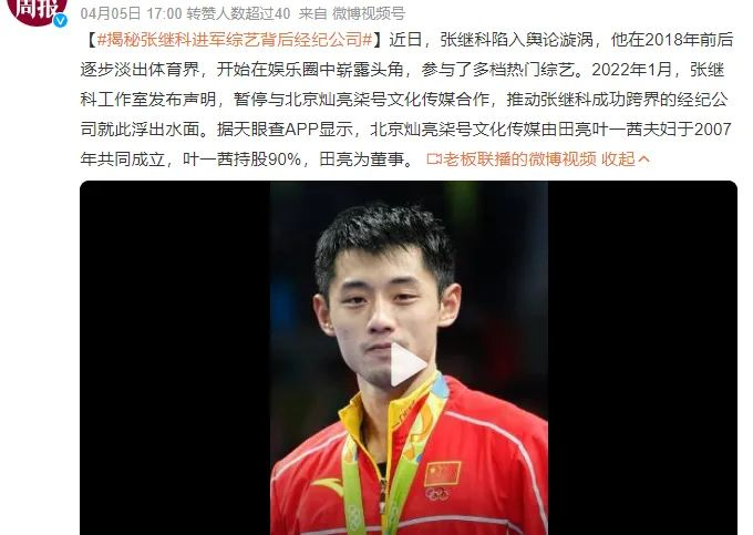 田亮成立了自己的经纪公司灿亮柒号文化传媒,签约了一众体育明星(包括最近塌房的张继科)。