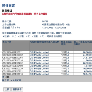 GIC减持的并不仅限于中国电信,还包括房地产以及相关国企。