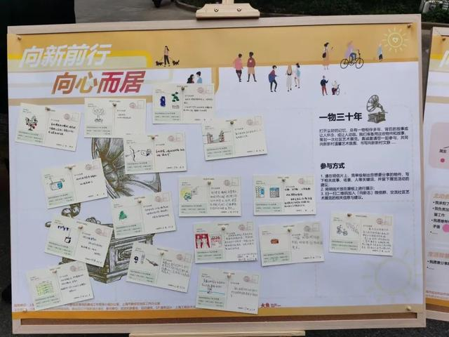 设计师团队采用简笔画的形式将老物件绘制出来,并在明信片上用文字记录居民与老物件之间的美好回忆。其中,一位阿姨特别分享了她的婚礼服装以及她与她先生的浪漫爱情故事,另有一位老爷爷手写了有关小区更新设计的建议。