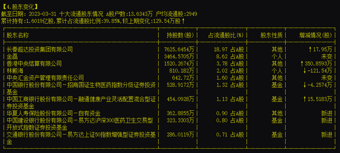 同日晚间,生长激素龙头企业长春高新披露财报。2023年第一季度,该公司净利润为8.57亿元,同比下降24.71%。从股东变化来看,一季度末,两只社保基金从公司的前十大股东名单中消失。不过,公司同时获得多家机构增持。