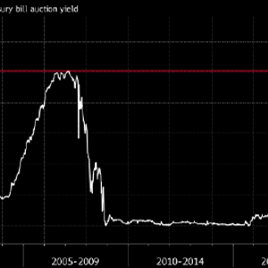 标售结果显示,美国政府周一发行的3个月期国库券中标收益率达到了5.08%,创下了自2001年克林顿任内最后几天(2001年1月16日)以来的最高水平。