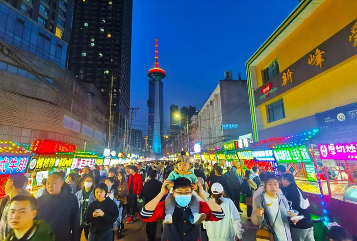 位于东北地区最高的建筑辽宁广播电视塔脚下,已有近30年的历史。夜市以招牌美食为引领,以彩电塔为主题IP,融入街头演艺、文化创意等元素,打造走街入巷的深夜食堂文化美食图。