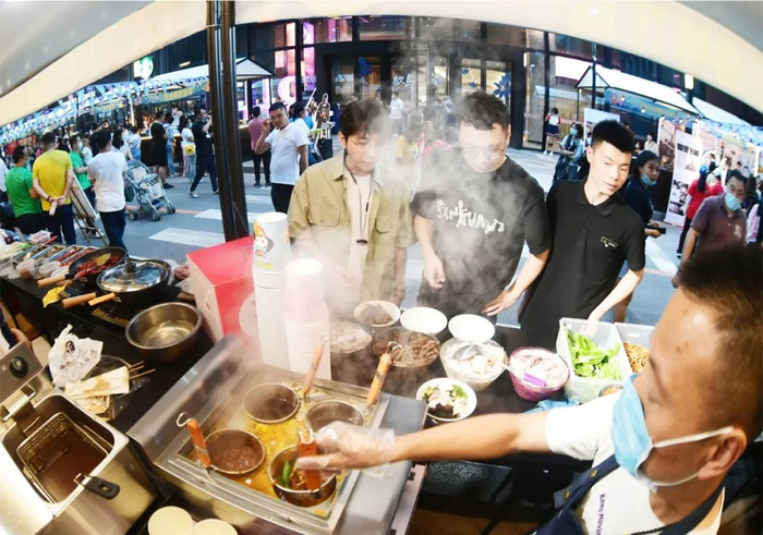 状元夜市以老字号等餐饮文化代表、东南亚美食、创意餐食、国潮非遗等作为夜市核心,创建特色一条街。邀请国家、省、市具有代表性的非物质文化遗产传承人和传承技艺来掀起夜市的国潮风。