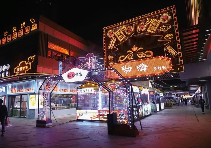 夜市汇集了来自五湖四海、融合了南北饮食文化及国际经典的各类特色小吃等,并有品类齐全的各类主题演出、大型娱乐设施、展示展览会展、旅游项目等服务项目。
