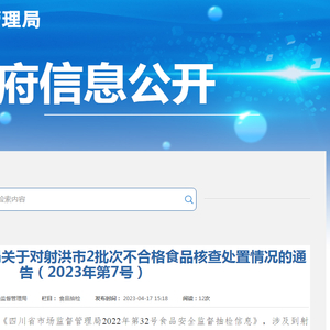遂宁市市场监督管理局关于对射洪市2批次不合格食品核查处置情况的通告(2023年第7号)