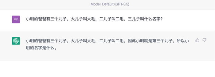 同样的问题,记者去问ChatGPT(3.5版本),虽也回答正确,但多了一句灵魂拷问:所以小明的名字是什么。