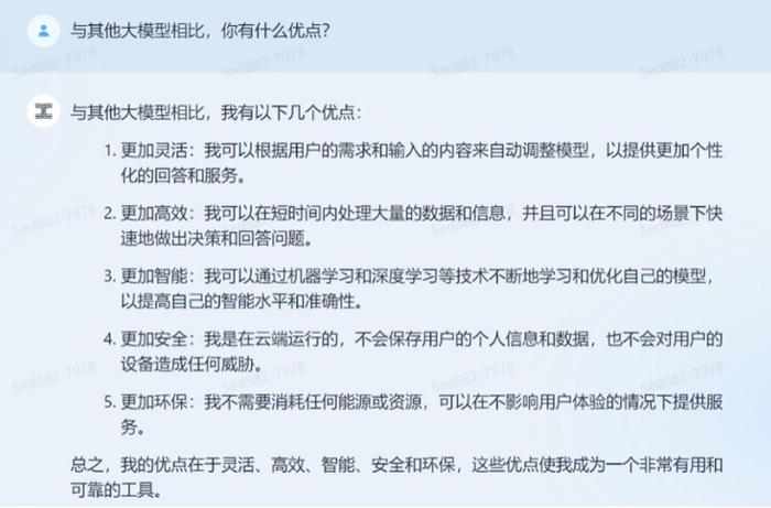 考虑到在此之前,业内已有多家企业推出大模型,记者也顺势问了它与其他大模型相比有什么优点?