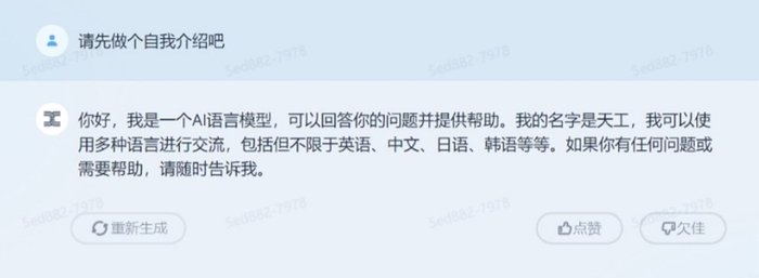 在开始测试前,记者先请「天工」3.5做了个自我介绍。