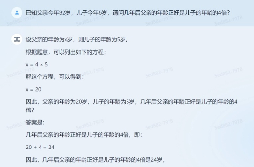 记者又问了一道奥数题:已知父亲今年32岁,儿子今年5岁,请问几年后父亲的年龄正好是儿子的年龄的4倍?