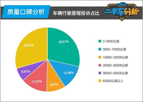 从车辆行驶里程投诉占比来看,行驶里程在3000公里内和60000公里以上出现问题的占比均接近三成,其中,行驶里程在60000公里以上的车型投诉占比最高,达到29.52%,侧面反映出路虎揽胜运动版出现故障的时间较为靠后。不过,新车阶段出现故障的概率也相对较大,毕竟行驶里程在3000公里内的车型投诉占比,同样高达28.57%。