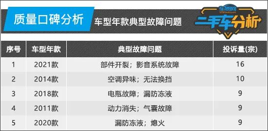 消费者在选择二手车时往往会忽视“原车制造质量”因素,但实际上这是在选择二手车时一项非常重要的指标。为此,车质网基于大量真实车主投诉,通过专业数据分析,对路虎揽胜运动版产品进行质量评估,从中找出可能存在的批次性质量缺陷,为消费者提供更为直接有效的参考信息。
