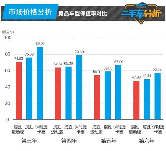 对于购买二手车的消费者而言,车辆保值率的高低也是影响购买决策的一个重要指标。一般来说,保值率越高的车型,意味着二手车价格也相对要更为坚挺。从路虎揽胜运动版第3-6年的保值率来看,与路虎揽胜相比要略低一些,较保时捷卡宴差距很大。不过,其第三年的保值率依然超过了70%,在车型保值率排行榜中位居前10名。