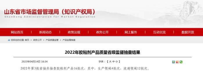 山东省市场监督管理局抽查胶粘剂产品16批次 未发现不合格项目