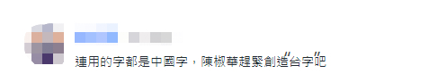 台湾网友对于“台独”顽固分子陈椒华动不动就拿所谓“文化统战”炒作的行为也十分反感,相关报道下留言嘲讽“满脑子意识形态”,“干脆自己造字吧”。