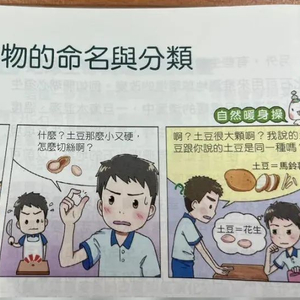 日前有网友在社交媒体发文,台湾康轩出版社出版的初中一年级下册生物课本“生物的命名与分类”中,通过三格漫画帮助学生学习,其中马铃薯称作“土豆”。学生A说:“上周末跟家人去餐厅吃到一道糖醋土豆丝,超好吃的。”令学生B感到疑惑:“什么?土豆那么小又硬,怎么切丝啊?”学生A则回答:“啊?土豆很大颗啊?我说的土豆跟你说的土豆是同一种吗?”该课本还标注“土豆=马铃薯”。