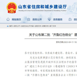 山东公布第二批“齐鲁红色物业”星级服务企业、项目