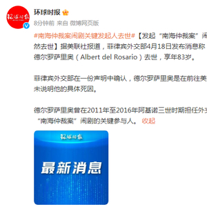 据美联社报道,菲律宾外交部4月18日发布消息称,菲律宾前外长艾伯特·德尔罗萨里奥(Albert del Rosario)去世,终年83岁。
