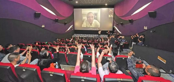 4月17日晚,潮汕话版配音演员、汕头本地群众演员相聚合胜影城观看自己参与的电影,共叙情谊。导演陈嘉上、执行制片人刘以成也通过视频连线点赞“汕头力量”。