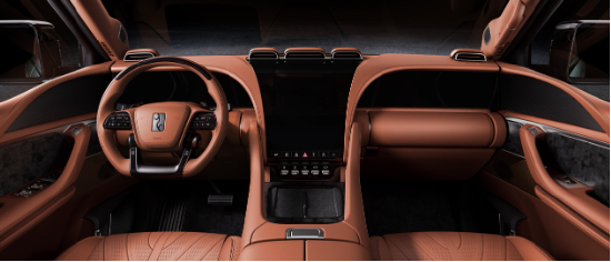 内饰方面,仰望U8为用户打造了极致的豪华座舱。星环座舱巧妙利用多重曲线,打造了强烈的环抱感。独创的 12.8 英寸星河曲面屏,打破以往直屏的对内饰设计的限制,塑造了前所未有的一体化、无边界的座舱氛围。车规级曲面 OLED 中控屏,基于真实人体数据模型,选定 37°为最佳倾斜角度,时刻保证用户以最方便的姿态操作屏幕。