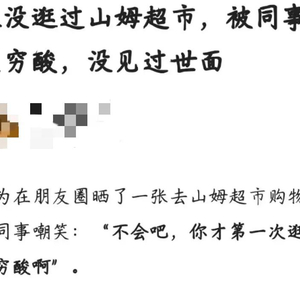 发帖人称,因为自己在朋友圈晒了一张去山姆超市购物的照片,就被同事嘲笑了: