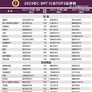 在日化领域,蓝月亮表现尤为突出。本次公布的榜单显示,蓝月亮共有4个品类进入同品类排名前三甲。2023年,蓝月亮洗衣液、洗手液再度荣膺C-BPI行业品牌力指数第一,并获评“黄金品牌”。值得一提的是,自2011年C-BPI指数发布以来,蓝月亮洗衣液、洗手液已连续13年稳居榜首,成为行业第一品牌,展现出卓越的品牌力。