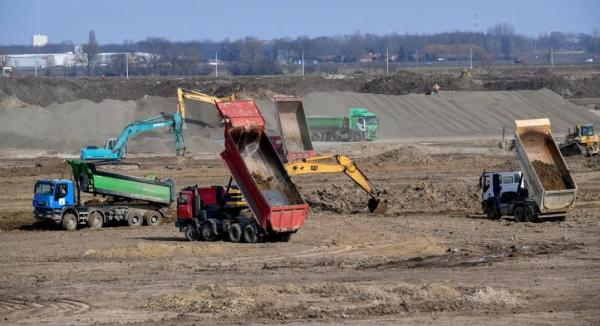 照片:2023年2月底,在德布勒森附近德利工业园区的未来宁德时代电池工厂区域,整地工作正在进行。照片:Zsolt Czeglédi / MTI