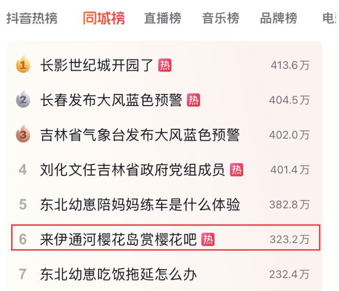打开各大社交媒体平台,冲在榜单中最多的当属长春的春和繁花了。