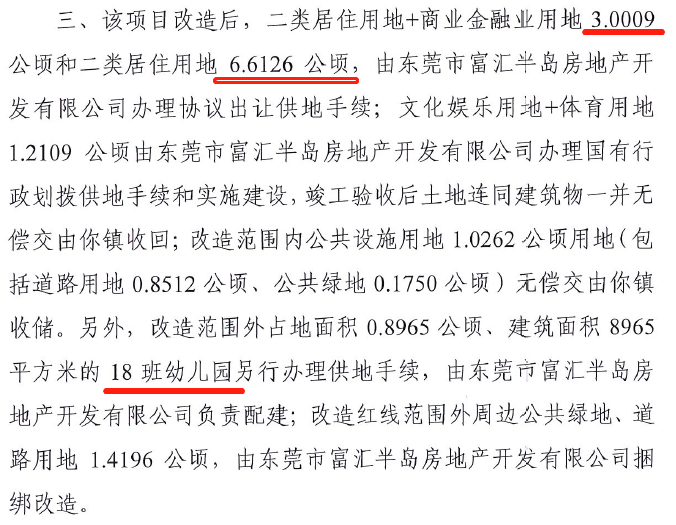 包含2宗居住地块:1宗是二类居住用地+商业金融业用地,用地面积约3万m²;另1宗是二类居住用地,用地面积约6.61万m²。2宗地块,均由东莞市富汇半岛房地产开发有限公司办理协议出让手续。