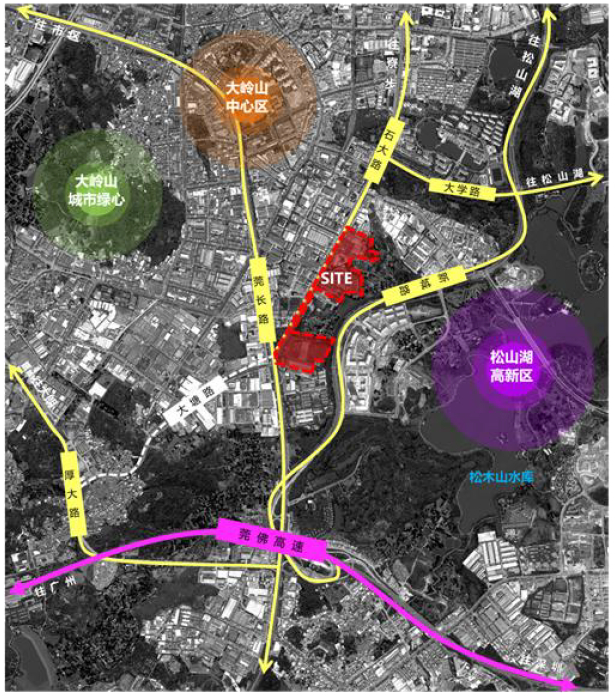 区位上临近松山湖高新区,是大岭山镇承接松山湖居住功能配套外溢的关键区域。