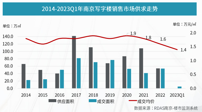 从租金水平上看,记者从该报告中了解到,许多写字楼业主在租金和免租期等条件上进一步让步,导致整体租金成交价环比下降1.8%,降至2.74元/平方米/天,新街口板块的租金水平仍处全市高位,与此同时,河西板块的高品质项目不断入市,物业软硬件水平持续升级,正不断缩小与新街口的差距。从销售市场来看,整体市场以去库存为主,一季度成交价格环比下降11.1%,下探至约1.4万元/平方米。