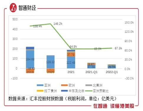以2022年Q1业绩为例,亚洲地区虽然仅贡献了汇丰48.31%的经调整收入,但是却贡献了67.3%的经调整除税前利润。