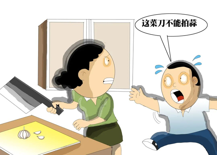 今年2月,徐州一用户用张小泉菜刀拍蒜,刀断成两截;